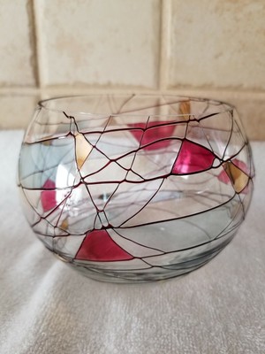 Partylite Stained Glass Candle Holders / YELLOW STAINED GLASS FIGURAL PINEAPPLE PARTY LITE CANDLE ... : Thin black lines separate the globe into sections creating a mosaic, with some sections deep rose, reflective gold or clear glass.